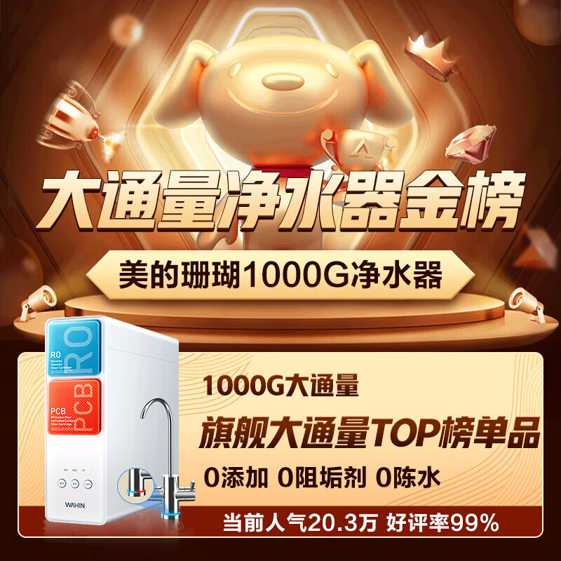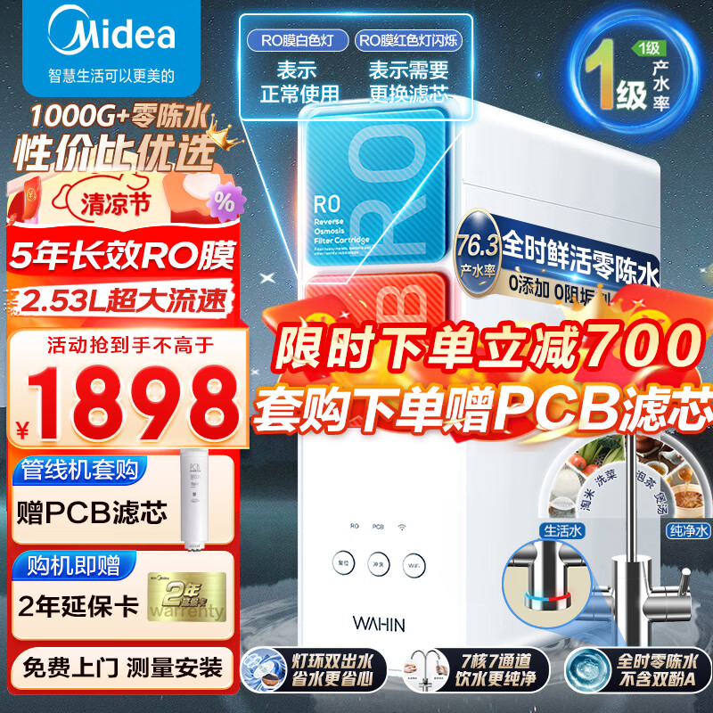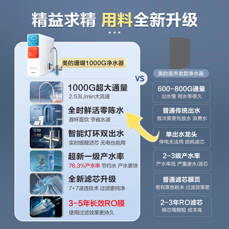 美的(Midea)【23年新款】家用净水器珊瑚1000G直饮净饮一体机5年RO反渗透过滤华凌0陈水大流量厨下双出纯水 【全时零陈水-双出水2.53L/分】价格:2599.00元!
