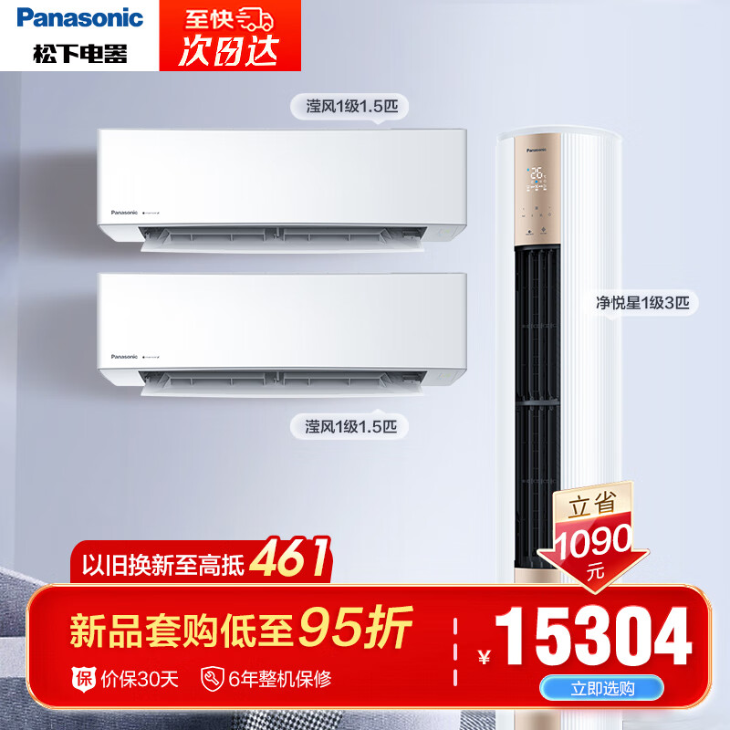 松下空调套装 1级1.5匹变频冷暖空调原装压缩机纳诺怡除菌挂机ZY35K410*2+1级3匹除菌圆柜ZY72F310N价格:15304.00元!