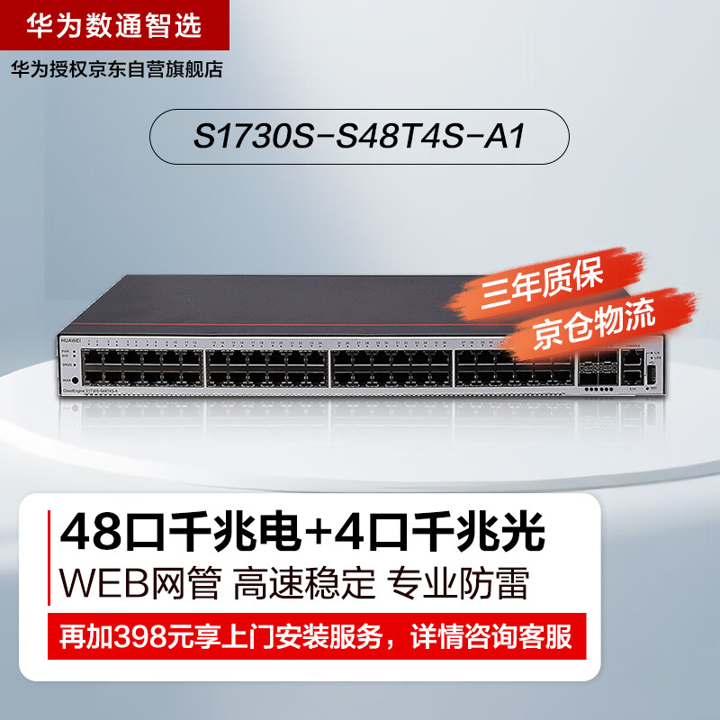 华为数通智选交换机48千兆电+4千兆光口企业级网络Web管理集线器S1730S-S48T4S-A1(S1720-52GWR-4P升级价格:2199.00元!