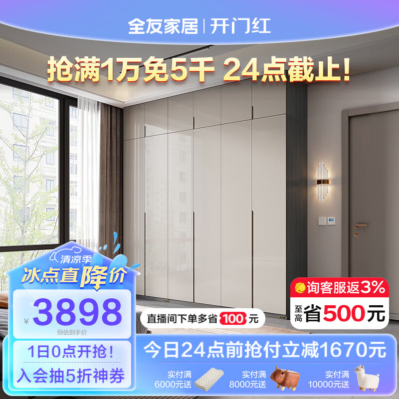 全友家居 衣柜卧室极简风模块化收纳智能感应灯平开门储物柜子DG10010价格:5568.57元!