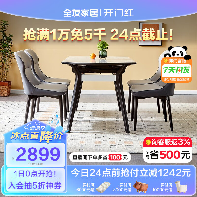 全友家居 现代轻奢岩板餐桌椅餐厅家具可方可圆伸缩折叠餐桌DW1059价格:4141.43元!