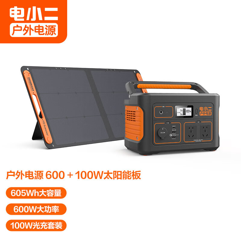电小二太阳能户外电源600W大功率220V移动电源 自驾野营应急备用储能电源 户外电源600+100W太阳能板价格:3398.00元!