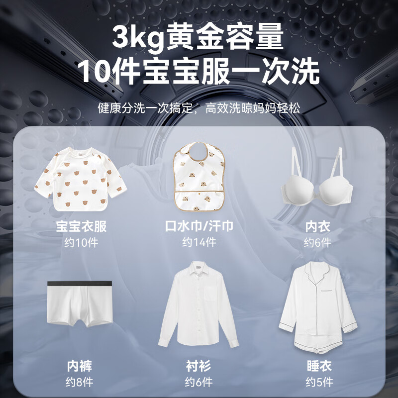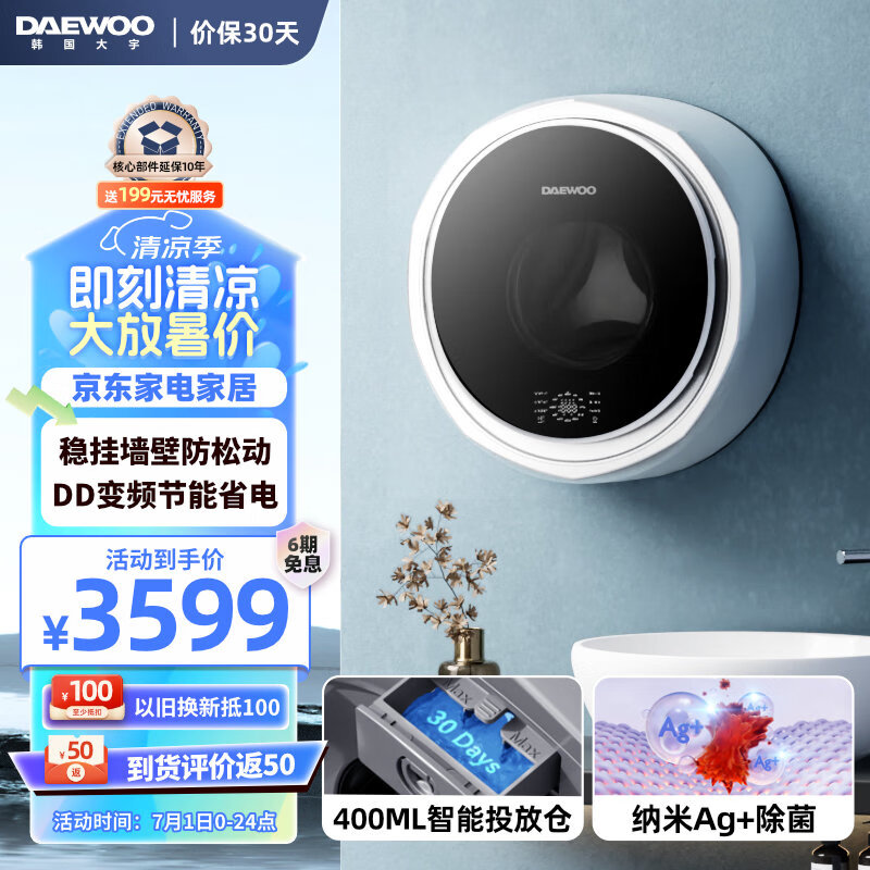 大宇(DAEWOO)3公斤壁挂洗衣机滚筒洗衣机全自动内衣洗 dd直驱变频 智能投放 DY-BGX06pro 皎月白价格:3599.00元!