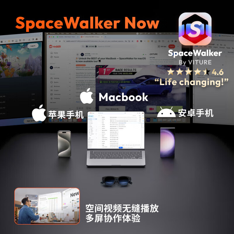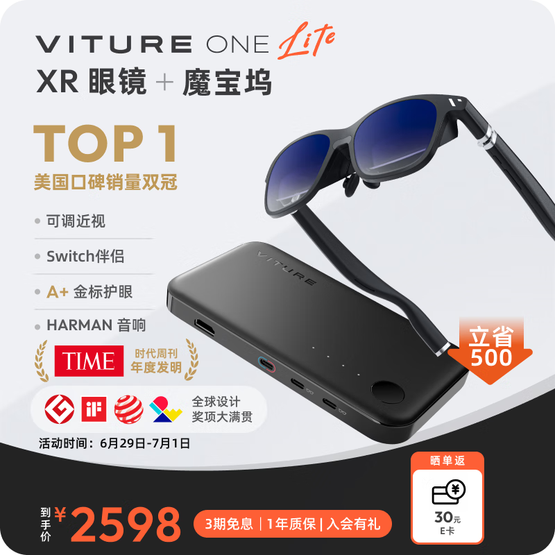 VITURE One Lite AR眼镜 XR眼镜套装版(魔宝坞+眼镜) Switch专属伴侣 支持双人游戏观影 500°近视调节价格:2798.00元!