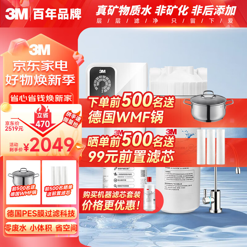 3M净水器家用净水机0废水矿物质直饮智能2.2L/分大流量700G过滤器 SW20价格:2329.00元!