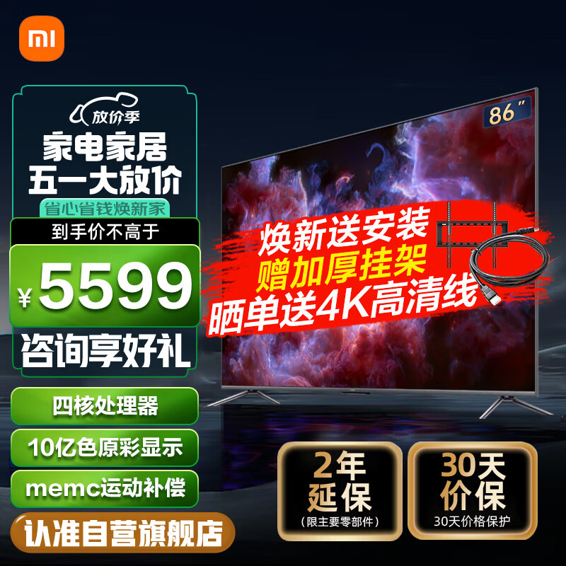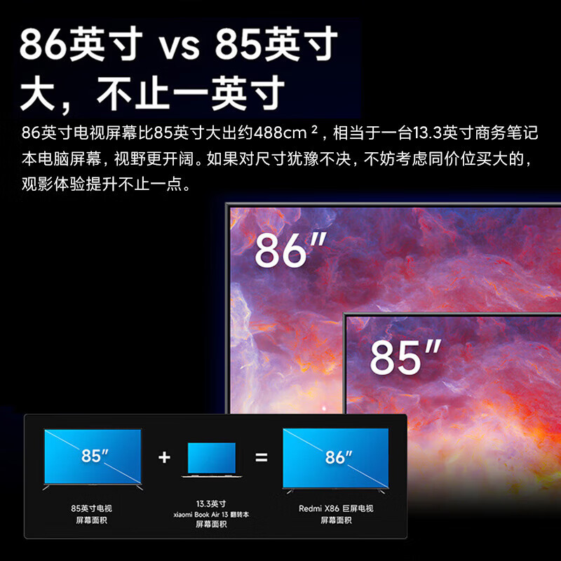小米(MI)电视 86英寸超大屏 金属屏 MEMC运动补偿 智能85英寸+电视机Redmi X86 L86R9-X[安装版]价格:5399.00元!