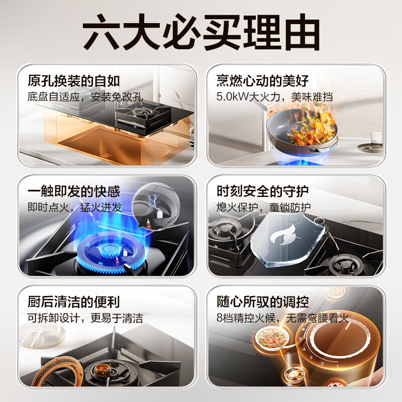 老板(Robam)燃气灶天然气灶 嵌入式台式燃气灶一级能效 家用大火力灶具 钢化玻璃可调节底盘 37B7X 【新品】 大火力5.0kW自适应灶具 天然气价格:1599.00元!