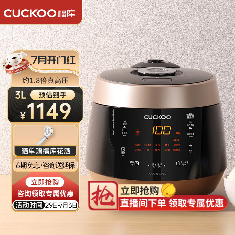 福库(CUCKOO)电饭煲家用多功能3升电饭煲韩国原装进口高智能电饭锅蒸米饭不粘锅内胆 PK0680FG 新包装 (1-4人) 3L价格:1699.00元!