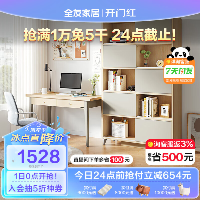 全友家居 北欧简约书桌书柜组合 带主机架书桌书房家具106321价格:2182.86元!