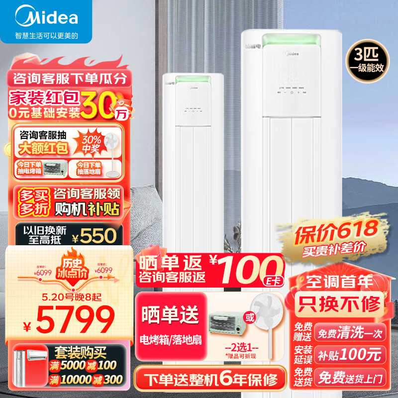 美的(Midea)空调3匹酷省电柜机新一级能效全直流变频冷暖空调立式客厅空调柜机节能省电 KFR-72LW/N8KS1-1P价格:5799.00元!