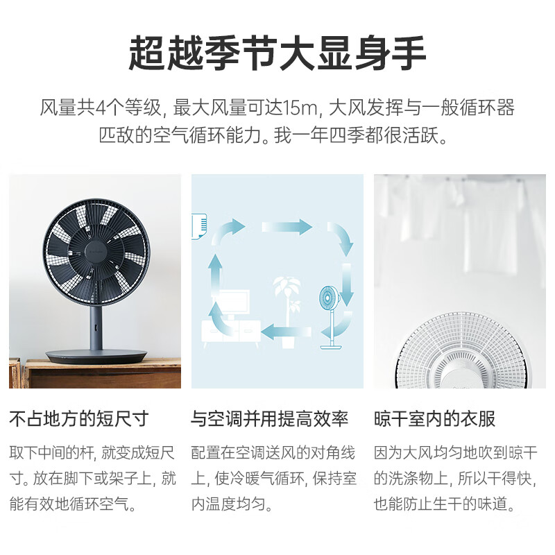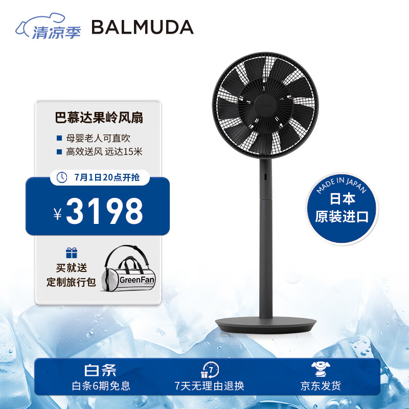 巴慕达(BALMUDA)果岭电风扇空气循环扇自然风落地台式两用客厅卧室无线大风力 日本进口 1800-WC深灰限定GreenFan价格:3988.00元!