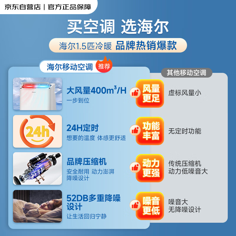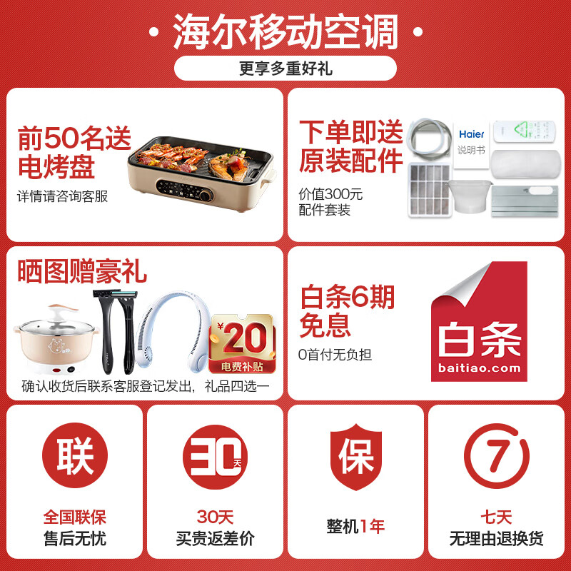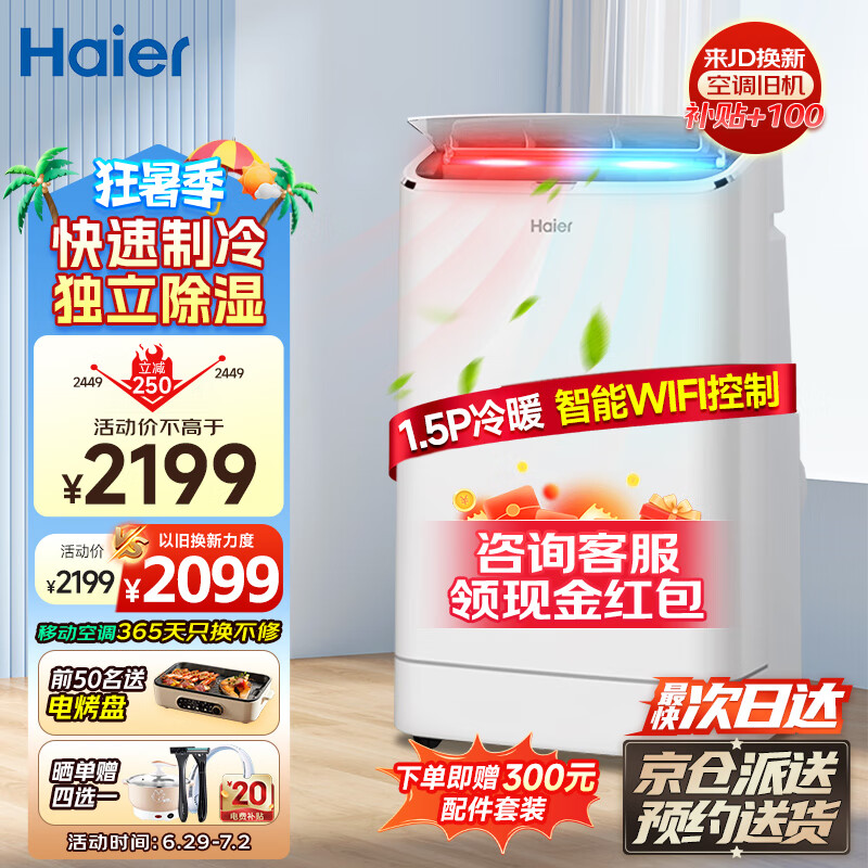 海尔(Haier)1.5匹冷暖智能可移动空调一体机厨房客厅立式家用空调便携式空调KYR-35YD-B1U1 WIFI款价格:2199.00元!
