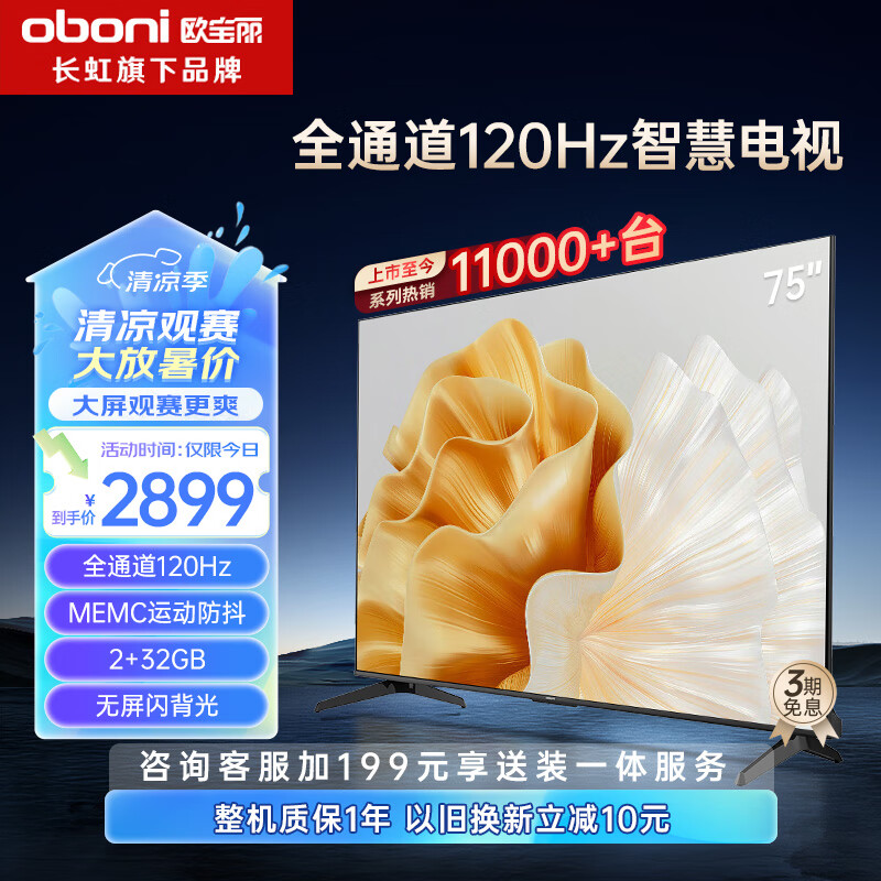 长虹欧宝丽75Z60 75英寸全通道120Hz高刷游戏电视 七大高刷场景 2+32GB 智能平板液晶电视机 以旧换新价格:2899.00元!