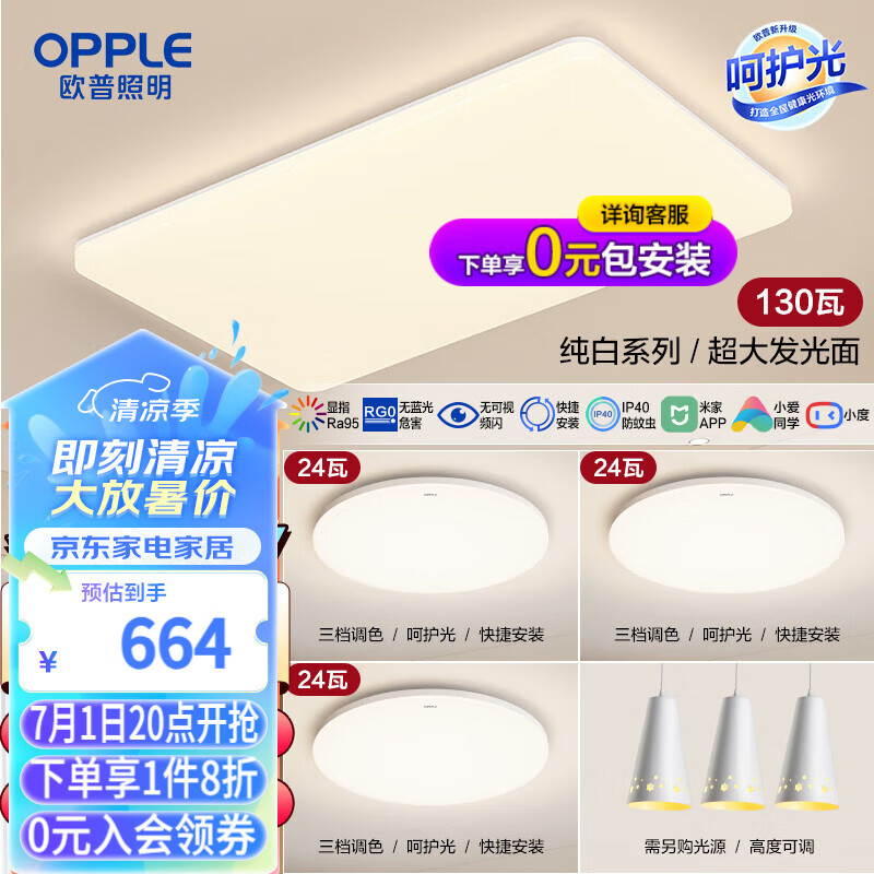 欧普照明(OPPLE) 吸顶灯客厅大灯米家智控LED照明灯具套餐1呵护光价格:830.00元!