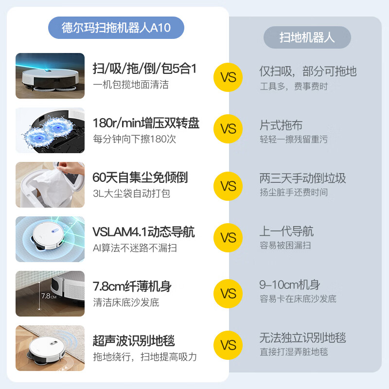 德尔玛(Deerma)A10 扫地机器人自集尘扫拖一体智能家用吸尘器扫地拖地一体机 扫拖价格:1499.00元!
