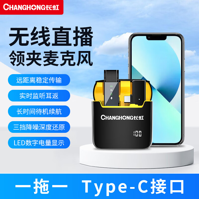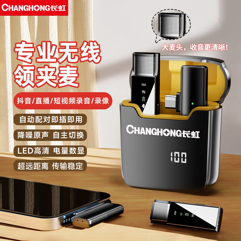 长虹F11无线领夹麦克风收音麦降噪手机直播专业录音户外抖音短视频带货采访拍摄录制专用价格:128.00元!