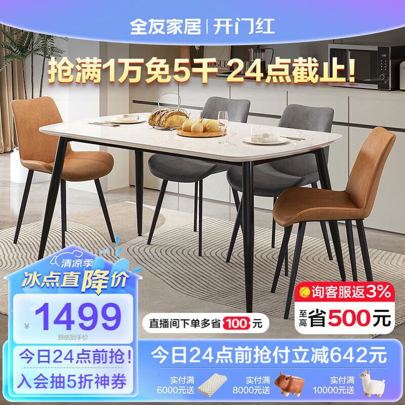 全友家居 餐桌耐用岩板台面长条桌餐厅稳固金属框架吃饭桌子DW1179价格:2141.43元!