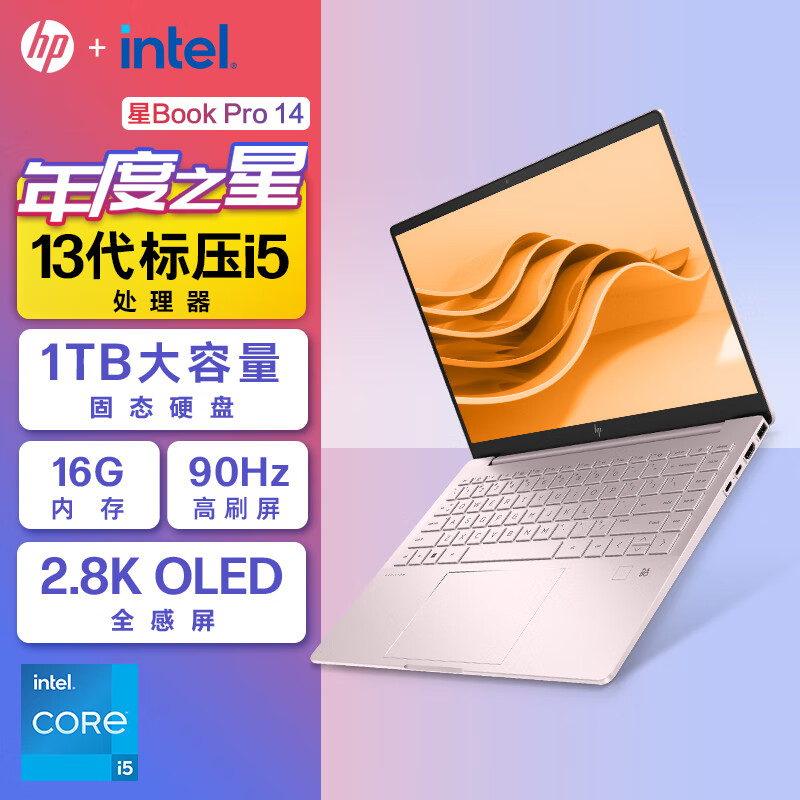 惠普HP 星Book Pro 14英寸轻薄笔记本电脑(13代酷睿i5-13500H标压 16G 1TB 2.8K 90Hz OLED全感屏 硬件护眼)粉价格:5299.00元!
