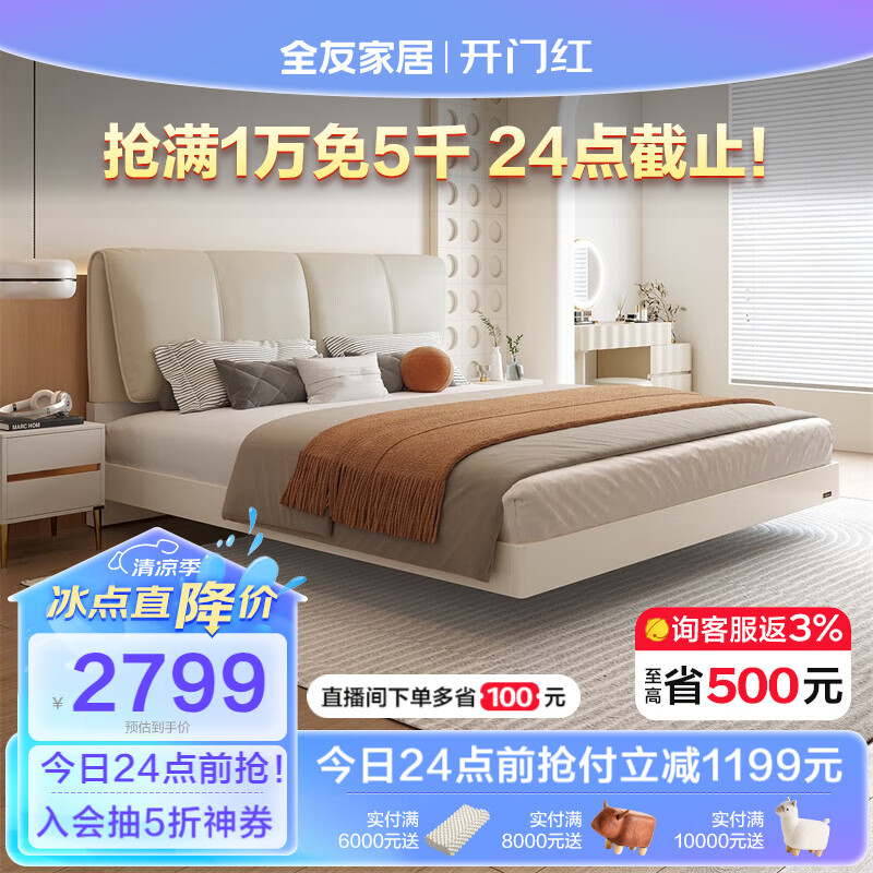 全友家居 现代简约大象耳朵皮艺软包床1.8米主卧室双人悬浮大床129303价格:3998.57元!