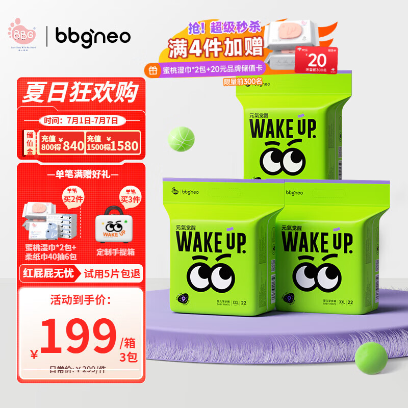 BBG元气觉醒neo系列拉拉裤2XL码3包箱装66片(12-16kg)尿不湿成长裤价格:219.00元!