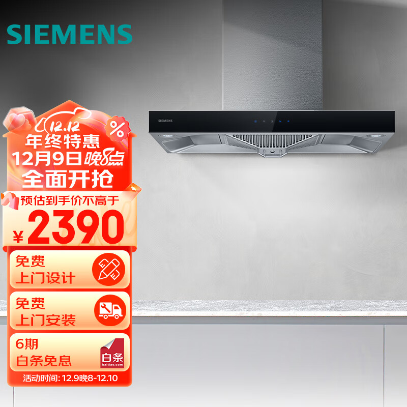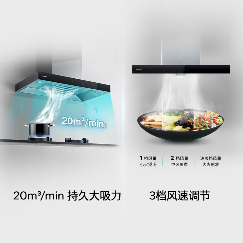 西门子(SIEMENS)欧式抽油烟机 20m3/min大吸力 顶吸家用 智能吸油烟机 LC46RA955W价格:2490.00元!