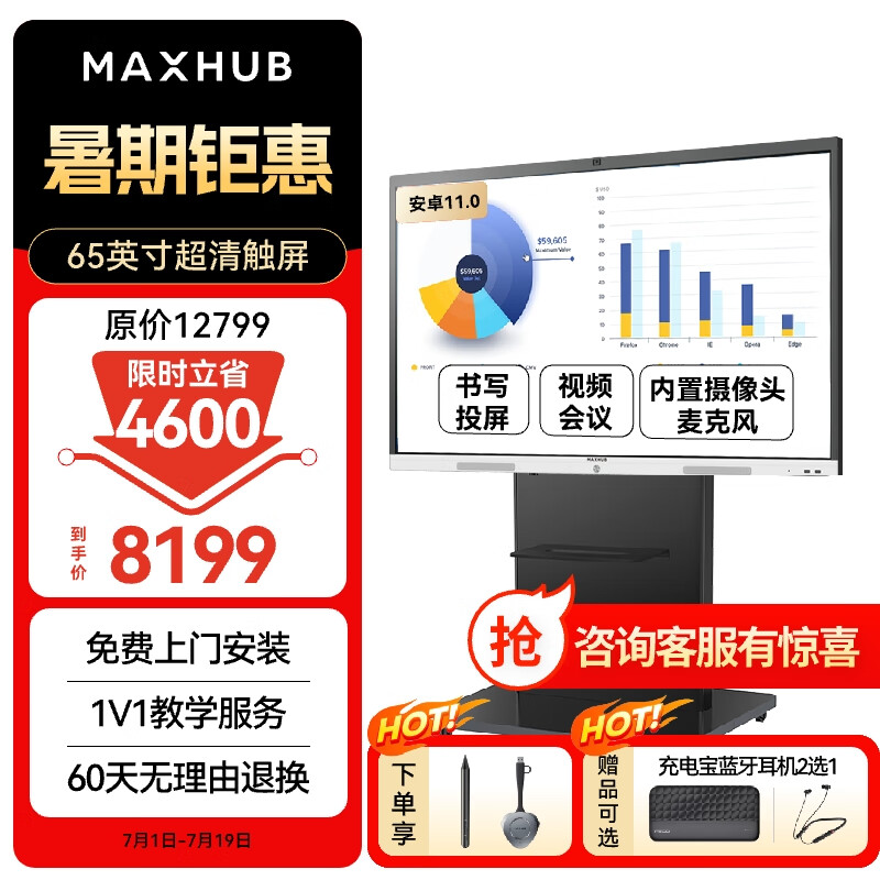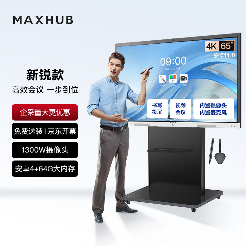 maxhub新锐65英寸会议平板一体机智慧屏会议电视可触摸会议显示器投影可移动教学办公商用显示器电子黑板白板价格:8199.00元!