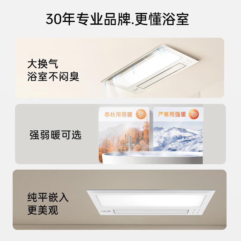 2、浴霸特别好,颜值也很高,效果一级棒,奥普浴霸大牌子有保障,推荐大家购买,这次直接买了两个,都特别好,安转师傅很耐心,效果不错。