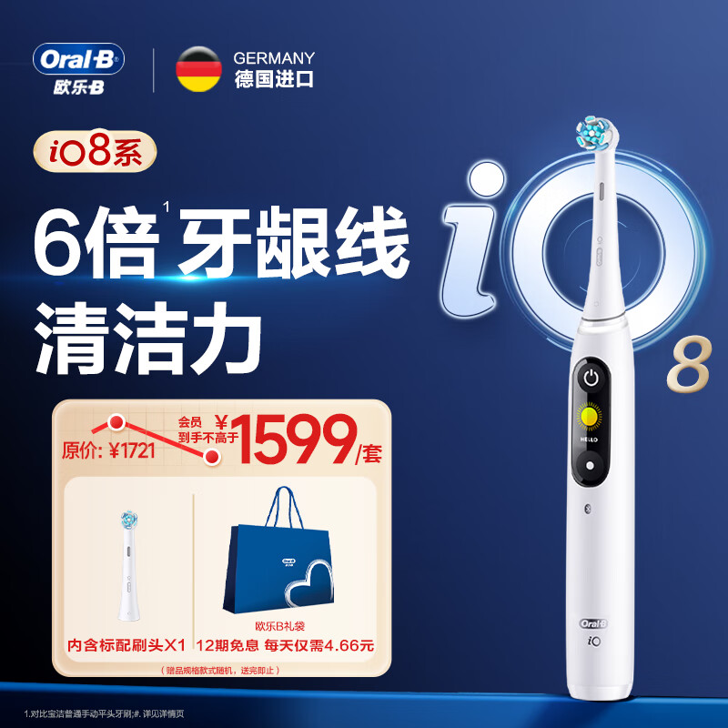欧乐B成人电动牙刷iO8云感磁波刷iO系列圆头微震科技深度清洁牙龈按摩智能护龈送男友送女友生日礼物价格:1721.00元!