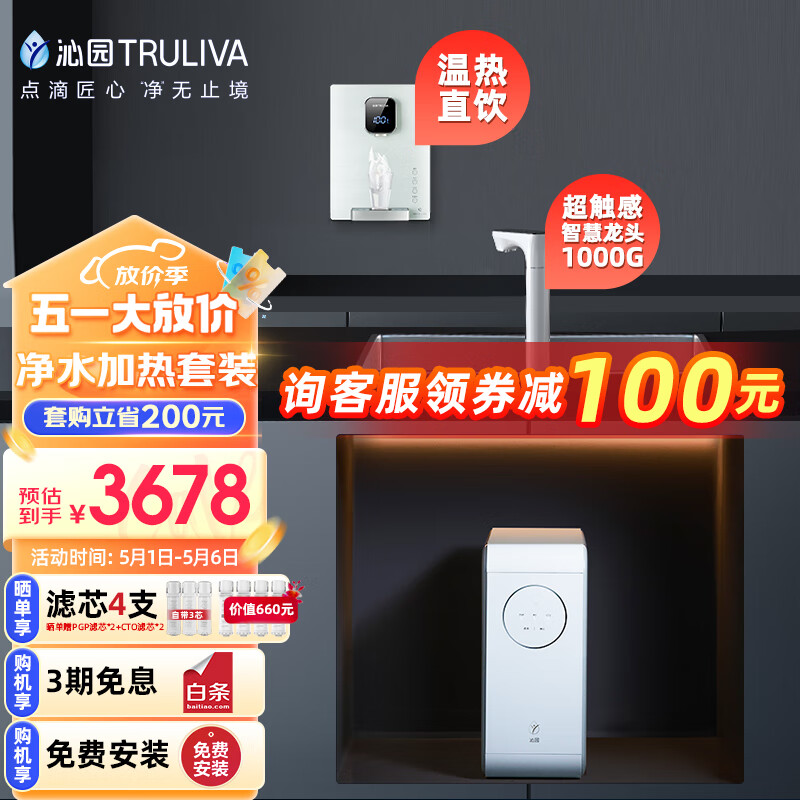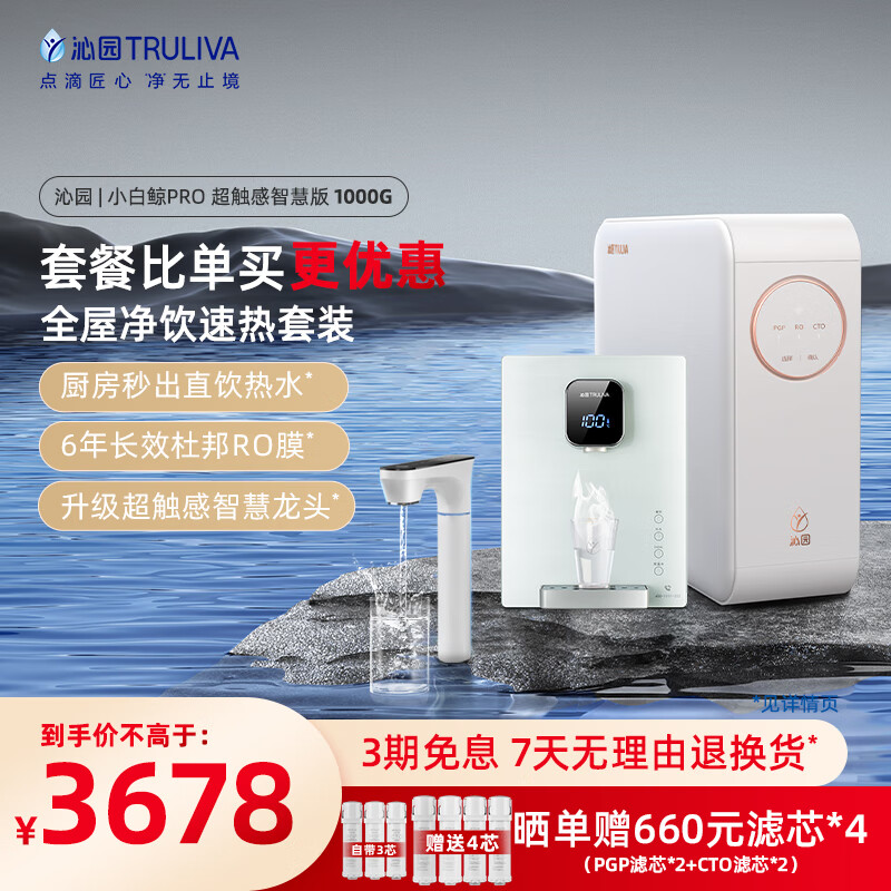 沁园(TRULIVA)触控屏 小白鲸PRO大通量1000G 二件套装 净水器UR-S51098+加热管线机LNW580-5W价格:3678.00元!