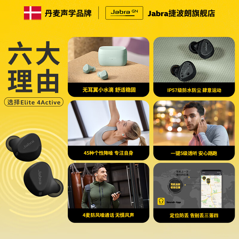 捷波朗(Jabra)Elite4Active 4A真无线蓝牙耳机 主动降噪运动防水音乐耳机 降噪豆 jabra小水滴 9级降噪 黑色价格:699.00元!