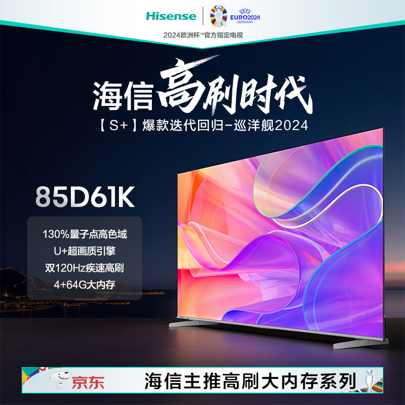 海信电视 85D61K S+ 85英寸4+64GB大内存AI智能语音 120Hz疾速刷新 130%高色域 U+画质引擎价格:10999.00元!