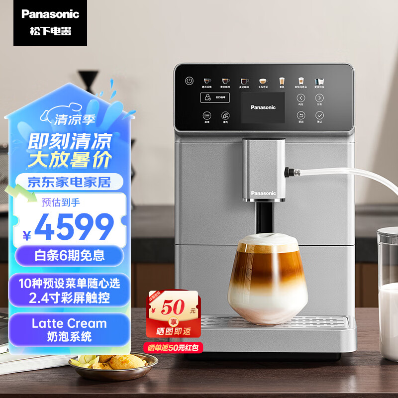 松下咖啡机家用/办公室全自动意式咖啡机研磨一体 奶泡系统 现磨咖啡豆 NC-EA801 曜石灰价格:4999.00元!