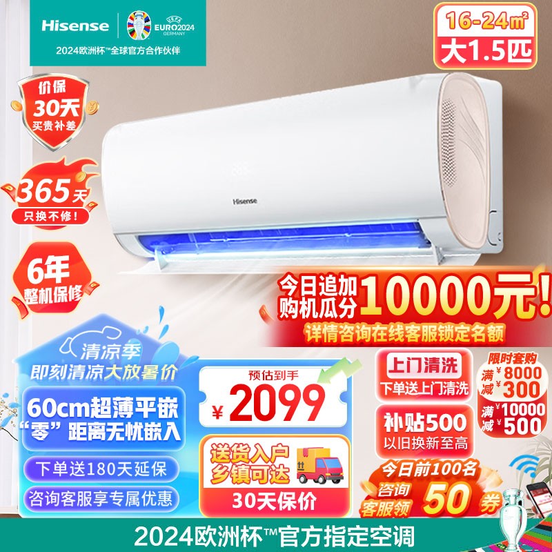 海信(Hisense)1.5匹 速冷热 新一级大风量光感静眠变频柔风壁挂式卧室空调挂机 KFR-35GW/S510-X1价格:2099.00元!
