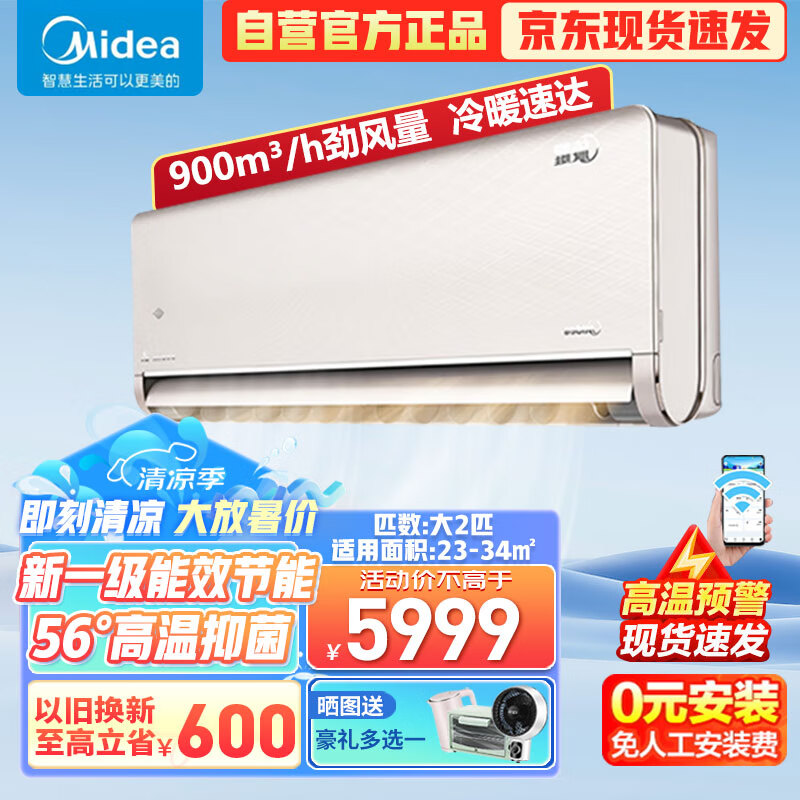 美的(Midea)旋耀 2匹空调挂机壁挂式一级能效大冷量大风量客厅自清洁KFR-50GW/N8MXA1价格:5999.00元!