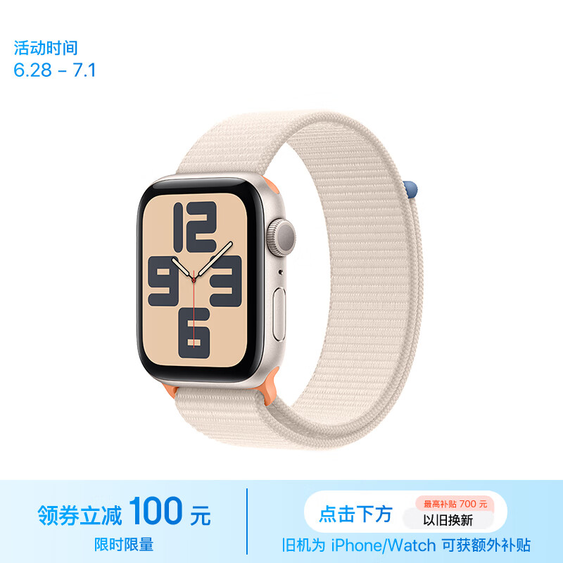 Apple/苹果 Watch SE 2023款智能手表GPS款44毫米星光色铝金属表壳星光色回环式运动型表带 MRE63CH/A价格:2199.00元!