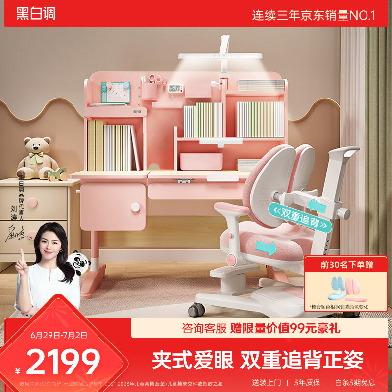 黑白调学习时光C2学习桌【夹式爱眼灯 双重追背】实木儿童学习桌椅套装1.2米粉价格:2699.00元!