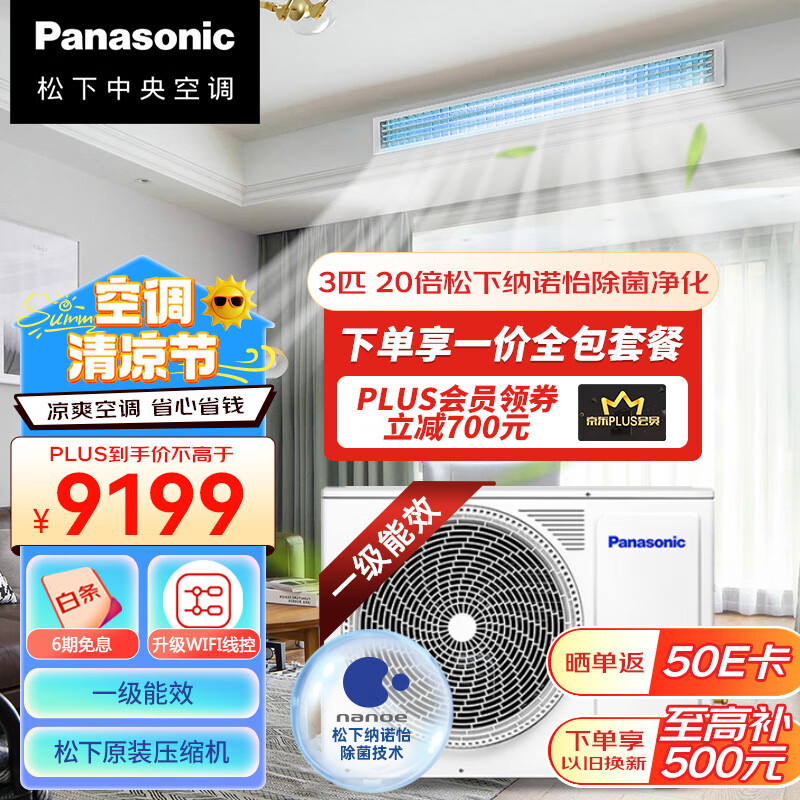 松下(Panasonic)全直流变频家用3匹风管机 ZD系列 新一级能效 20倍松下纳诺怡除菌净化 包基础安装 CS-E27D0AZ2BD价格:9899.00元!