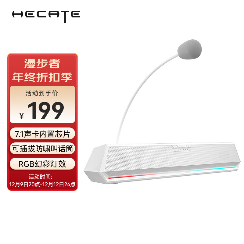 漫步者(EDIFIER)HECATE G1500bar 7.1音效电竞桌面游戏音箱防啸叫话筒蓝牙5.3电脑多媒体家用台式机笔记本音响白色价格:269.00元!