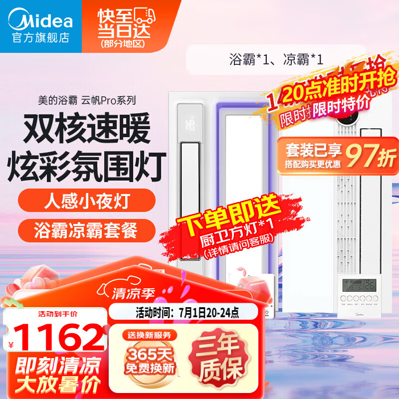 美的(Midea)风暖浴霸双核排气扇照明一体卫生间取暖器集成吊顶智能浴室暖风机价格:1210.00元!