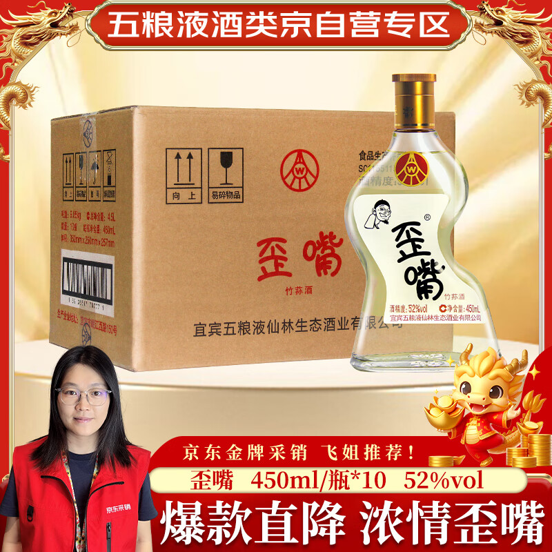 五粮液仙林生态酒公司52度优级酒五粮歪嘴酒450ml*10瓶整箱装价格:780.00元!