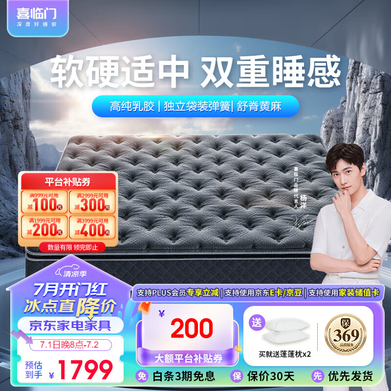 喜临门床垫 进口高纯乳胶 独立弹簧席梦思 黄麻垫 金星knight 1.8x2米价格:2199.00元!