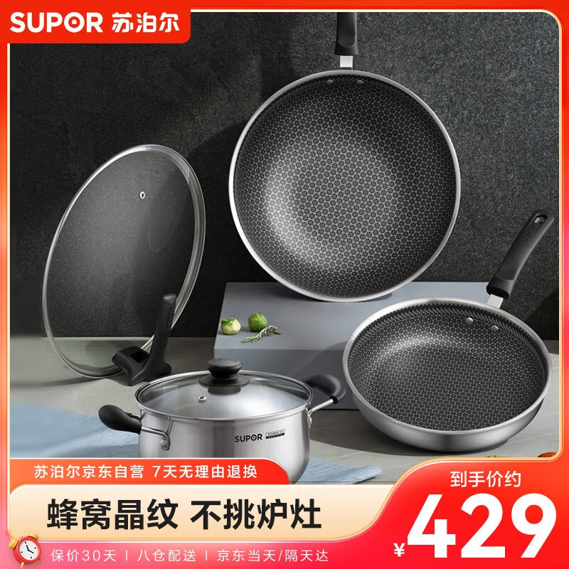 苏泊尔SUPOR 火红点系列锅具套装不粘三件套磁炉通用TP1627E价格:499.00元!