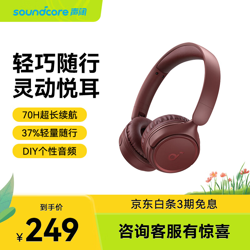 声阔(Soundcore)H30i 头戴式耳机无线蓝牙 长续航高音质蓝牙5.3音乐耳机 适用苹果华为 新年礼物红价格:249.00元!