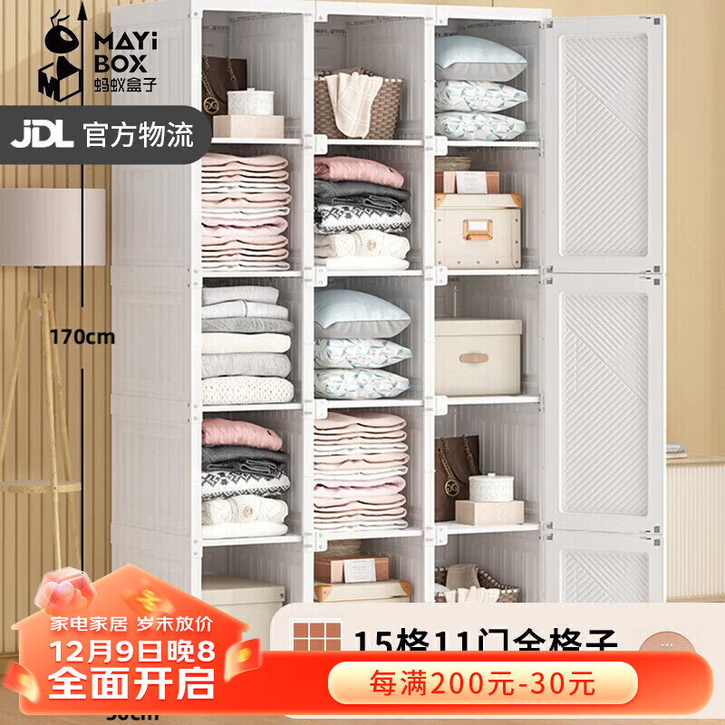 蚂蚁盒子(MAYIHEZI)免安装简易衣柜家用卧室出租房收纳衣橱 白板15格11门全格子价格:689.00元!