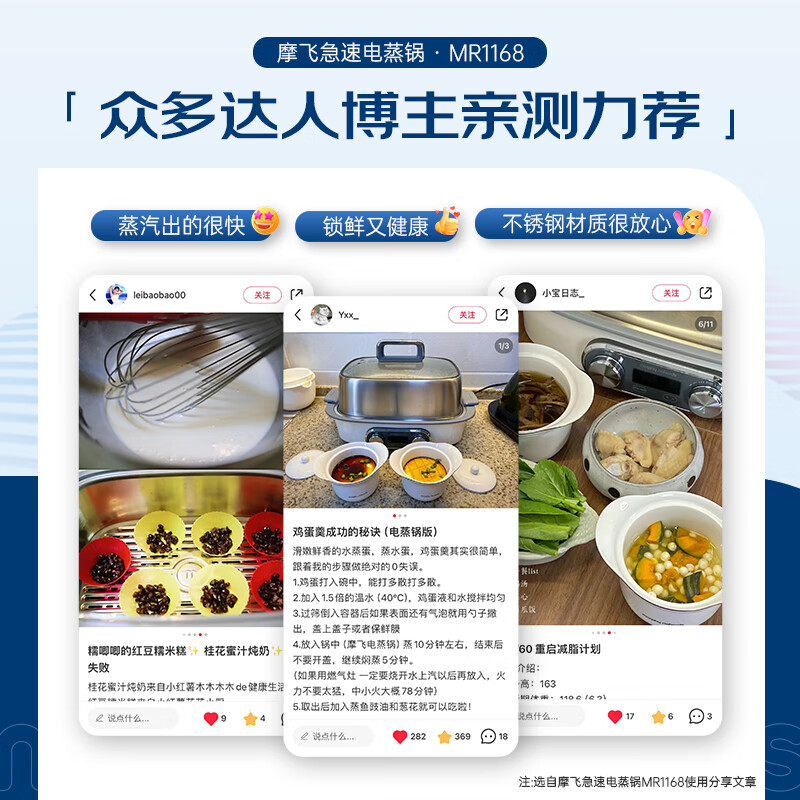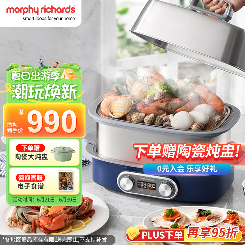 摩飞电器(Morphyrichards)电蒸锅家用不锈钢大容量蒸炖锅速蒸锅 多功能预约定时保温电炖锅多用途锅【含陶瓷炖盅】MR1168蓝价格:990.00元!