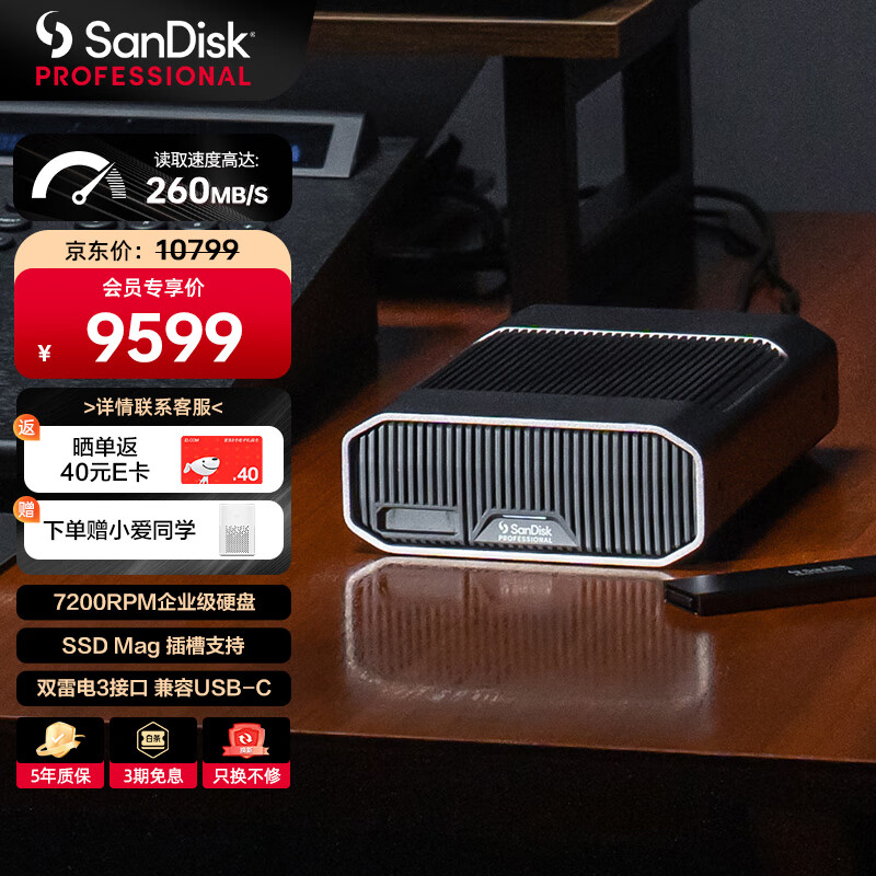 闪迪大师极客 致捷 22TB 企业级桌面移动硬盘机械硬盘 雷电3兼容USB Type-C 3.5英寸大容量读写速度260MB/S价格:10199.00元!