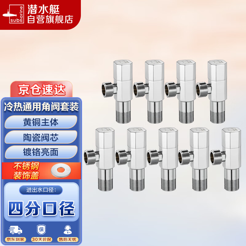 潜水艇(Submarine)F003-9黄铜加厚三角阀套装冷热通用八字阀国标4分进出水陶瓷阀芯价格:317.00元!