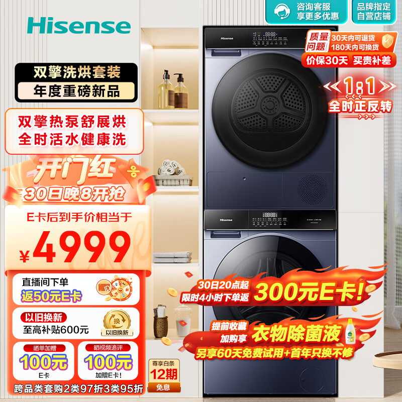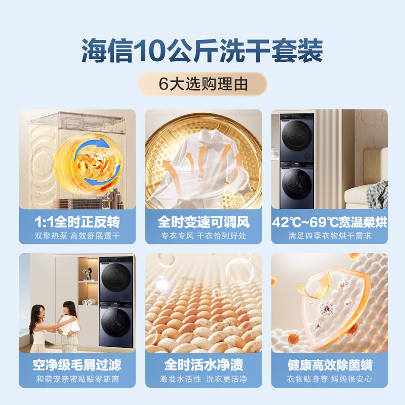 ???ţ?Hisense??????SEϴ????װ 10??????Ͳϴ?»?ȫ?Զ?+˫???ȱú??ɻ? 1:1????ת ??ˮϴ HG100DSE12F+DG10SE3?۸???5499.00Ԫ??