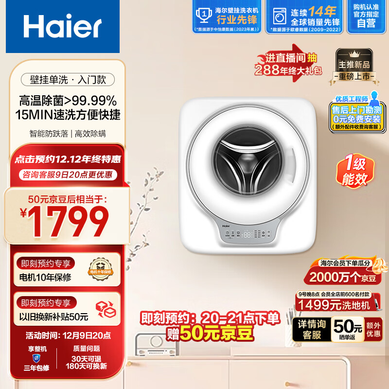 海尔(Haier)壁挂洗衣机 滚筒洗衣机小型 内衣洗衣机婴儿洗衣机儿童洗衣机 3公斤 高温除菌 防跌落EGM30707价格:1849.00元!