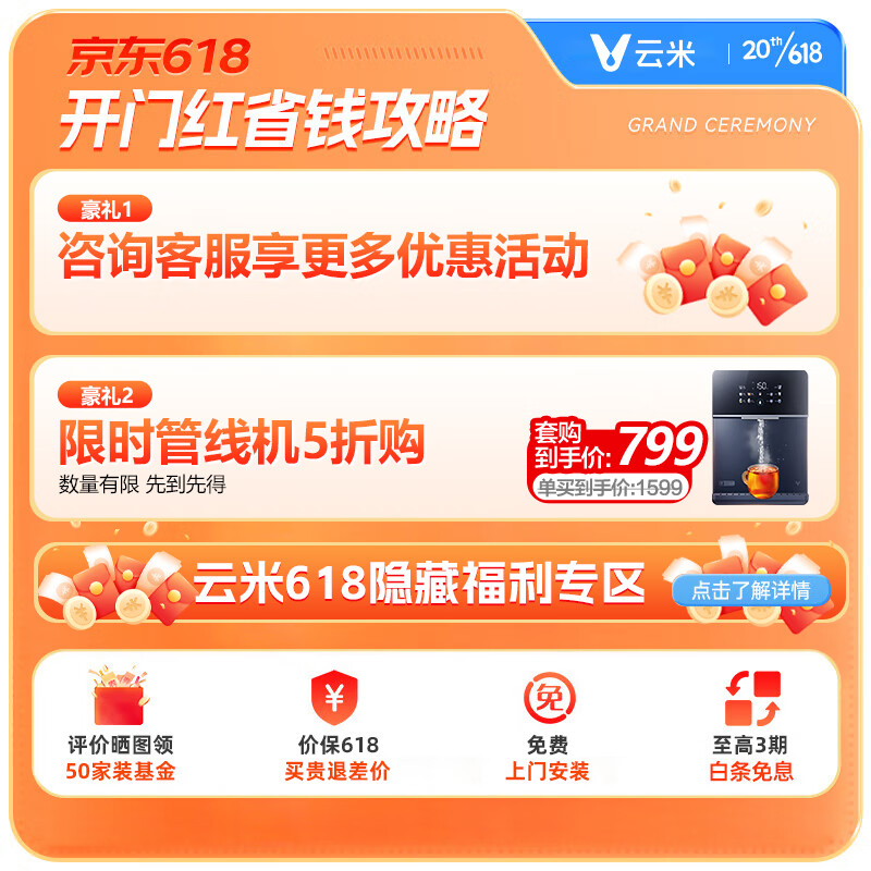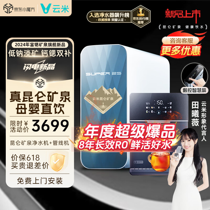 云米(VIOMI)昆仑矿泉净水机1200G大通量钙锶母婴直饮厨下RO反渗透净水器+加热壁挂饮水机/管线机 热净套装价格:4099.00元!